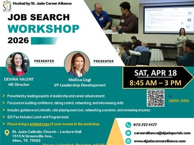 The St. Jude Career Alliance, a faith-based ministry that offers hope, guidance, and practical tools for job seekers, will offer its next quarterly job search workshop on Saturday, April 18, 8:45 AM...
